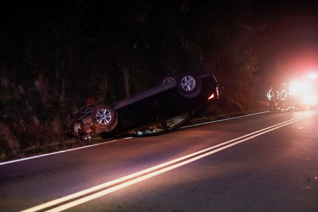 The Black Hyundai continued traveling on South Main Street at a high rate of speed, Roberts says. Officer Rivera turned off his blue lights, slowed down, notified dispatch he was no longer in pursuit. Officer Rivera continued on South Main Street and lost sight of the Hyundai in a sharp curve. As he rounded the curve, Roberts says, Rivera discovered the Hyundai overturned on its roof.