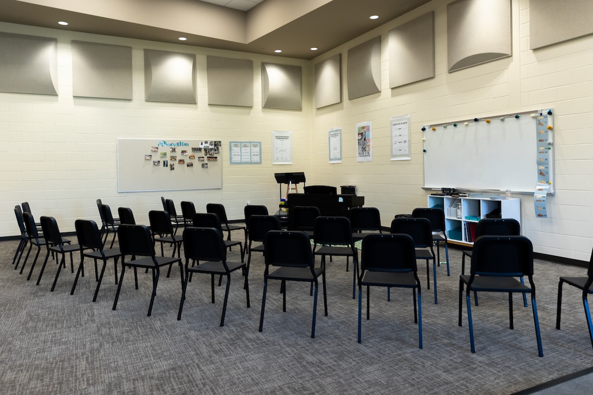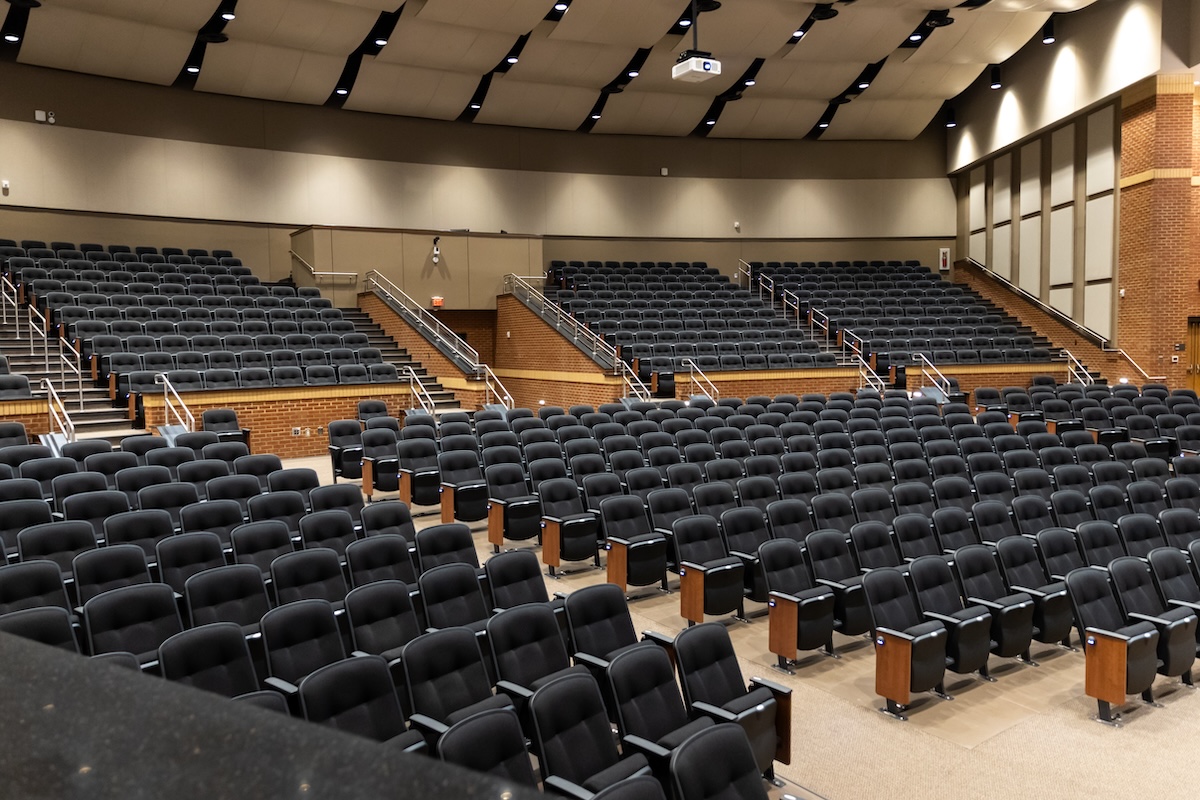 The new facility houses the band, chorus, and theatre, and seats about 720 people for performances. The Center is built where the baseball field was once located. The baseball and softball fields have been moved to the left of the football field.