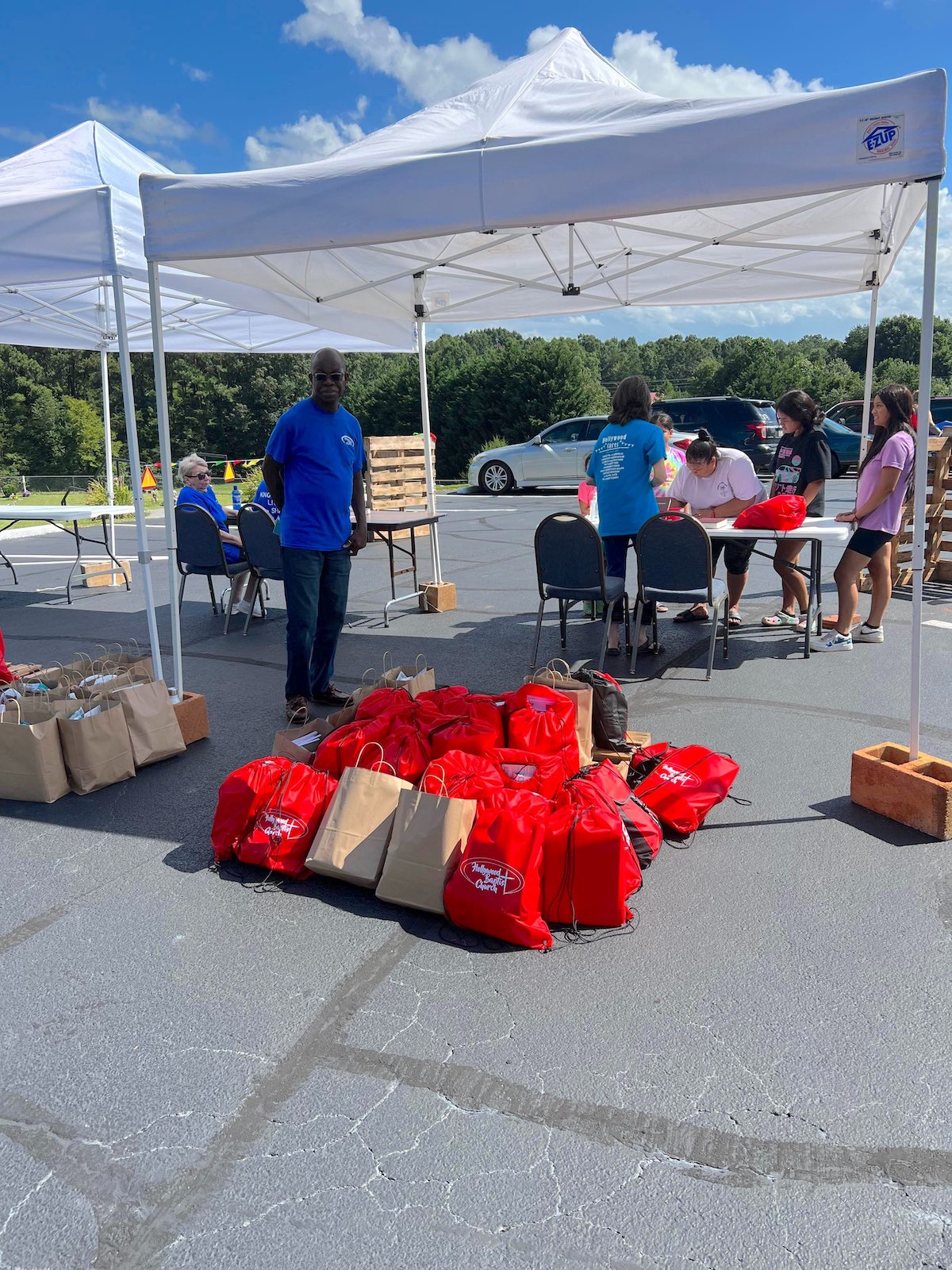 “We have been very blessed. Farm Bureau, Walmart, other people have donated book bags, like Revive Church here. We now have over 270 bookbags already prepared to hand out. They will go to students and children who do not have anything,” Moffett tells Now Habersham.