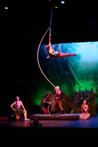 Cirque Arqadia is the story of a young girl who gets trapped in the magical, fantasy land of Arqadia, where she discovers she’s fated to destroy the world. The production showcased a variety of aerial acts and included firebreathing, contortionism, and tumbling.