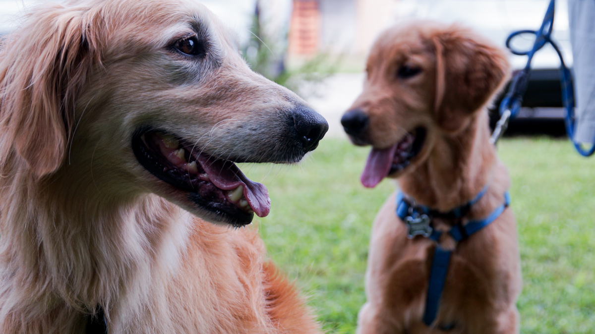 Grace [left] and Fisher [right] scope out the other dogs as they arrive. (Photo: Hadley Cottingham, Now Habersham)Robin and Chad Kelly, Habersham vacationers and pet parents to Grace and Fisher, took time away from home in Atlanta to take in the nature Habersham has to offer. After they found out about Clarkesville’s event, they brought out their two Golden Retrievers to make new friends and try their paw at the SouthPaws Sports Scenter’s agility course.