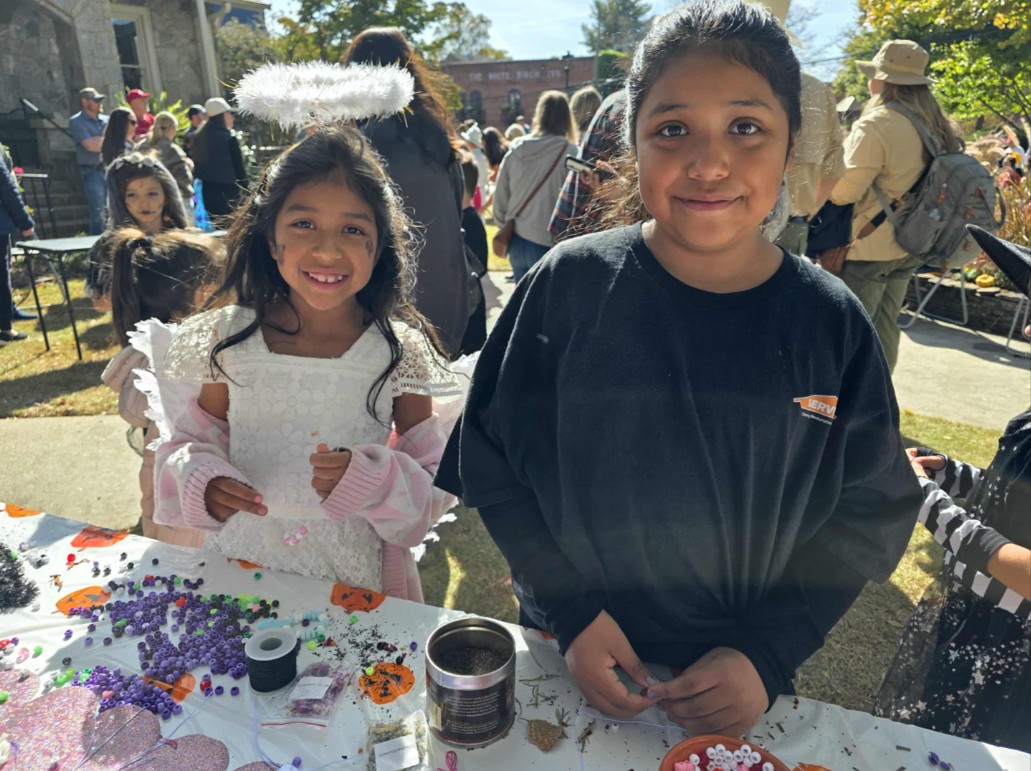Next to me, Reeves Home Furnishings hosted a pumpkin-painting station, using pumpkins donated by Boles Market. Around us, the square buzzed with laughter and the shuffle of costumes against concrete.