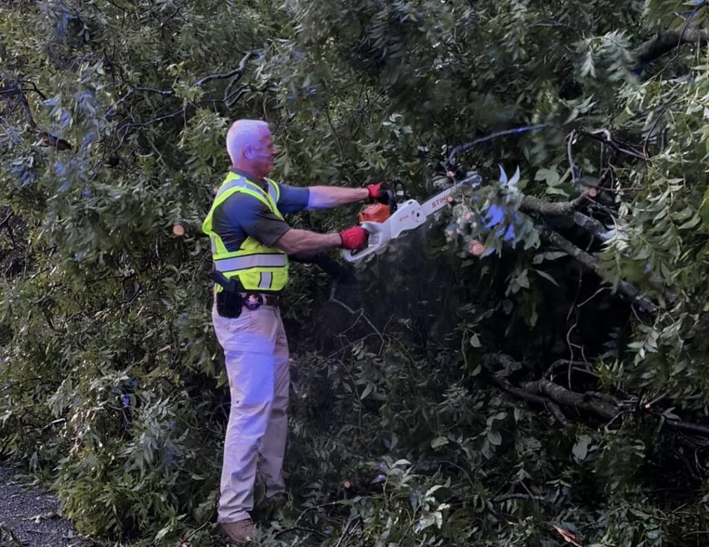 Banks County Sheriff Carlton Speed said the north end of the county “seems to be severely impacted.” He warned, “Roads may be blocked and unsafe,” and as the cleanup continued into the early hours Sunday, urged drivers to stay off the roads if possible.