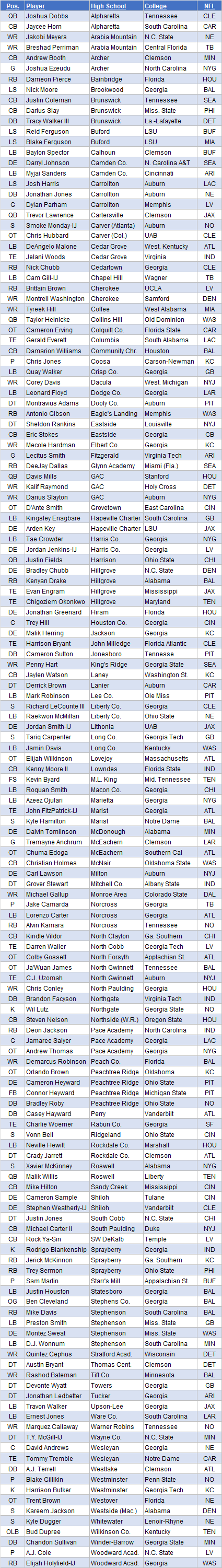 GHSF Daily does the research by comparing active NFL rosters to Georgia’s 2022 draftees, NFL combine invitees and past NFL players from the state. Please report errors or omissions, which are inevitable, as NFL rosters are fluid and difficult to research for high school data. The list includes only players on active rosters or injured reserve as of noon Tuesday. It does not include players on practice squads or unable-to-perform or suspended lists.