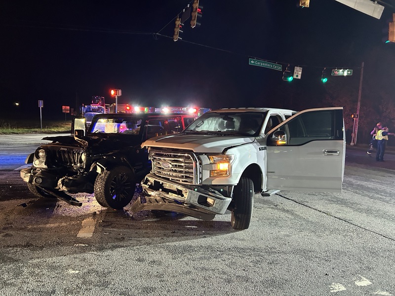 A collision between two vehicles at the intersection of Business Highway 441 and J Warren Road in Cornelia resulted in significant damage but no injuries Friday night.