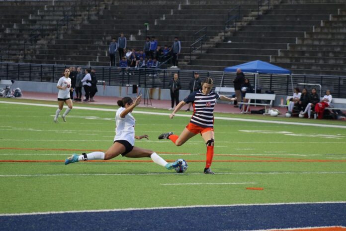 HCHS earned a corner and the headed effort on goal was parried away by the Gainesville keeper. The ball landed back at the feet of Banks, who had no issues finding the bottom right corner of the goal with her left foot.