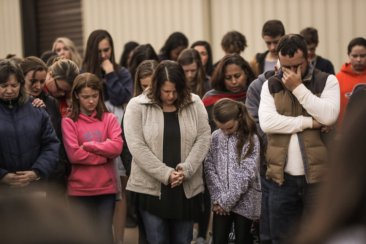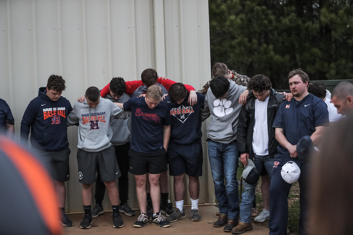 Under a pink sunset, Raider Park sign and athletic field lighting, around 100 people gathered in a circle at Wilbanks Middle School. These people, affected by the Feb. 24 wreck that killed Toccoa businessman, Hayward Cochran Jr., and injured Habersham Central High School student, Hadden Carswell, gathered for a prayer vigil. Teammates, coaches, friends, and family of Carswell, as well as broken-hearted members of the involved communities, offered prayers for Hadden’s healing and peace for Cochran’s family.