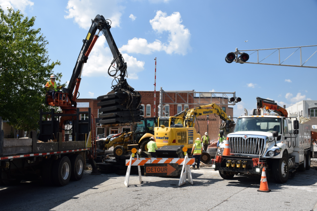 The construction crews were beginning to install portions of the rubber crossing Wednesday afternoon while Clyde spoke to some of the railroad personnel. The project is expected to be completed on Thursday.