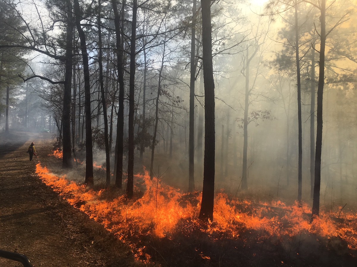 Fire managers are actively burning off leaf litter, vegetation, and debris to reduce wildfire hazards and improve the wildlife habitat.