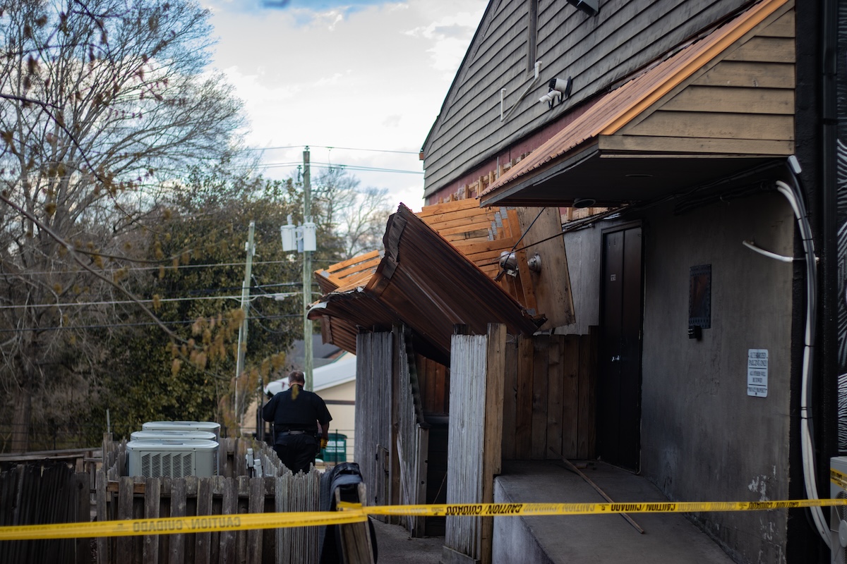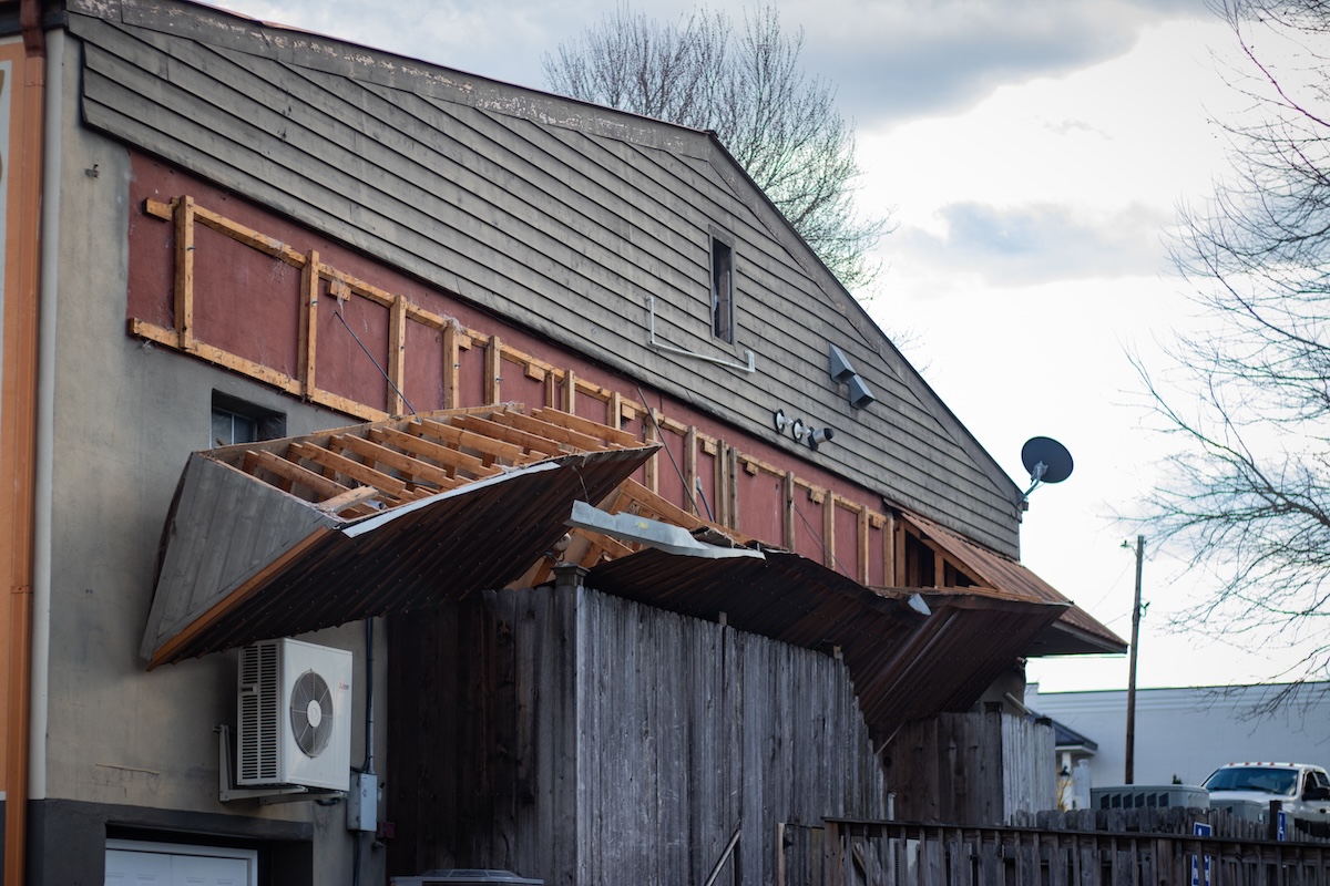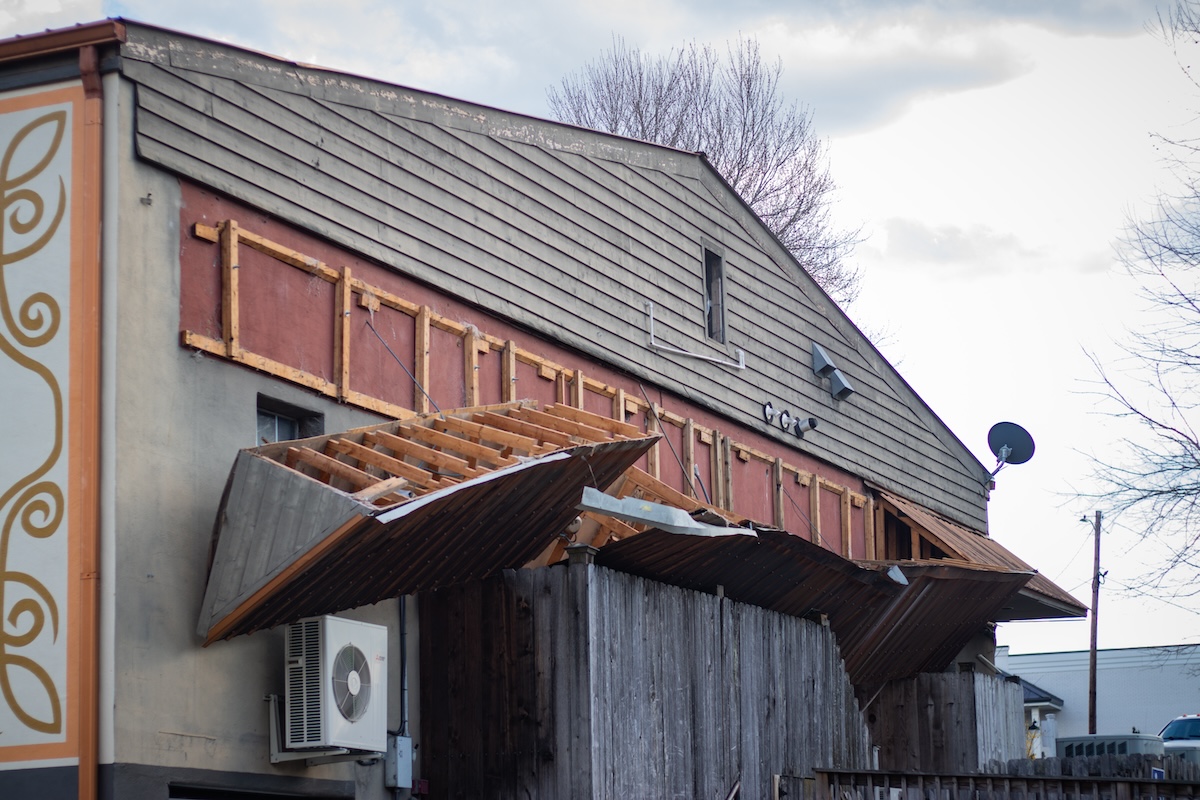 The mishap occurred shortly after 6 p.m. on March 25. Units responded to a 911 call reporting the back of the building had collapsed. Police and firefighters arrived to find the wood and metal awning dangling precariously above the restaurant’s back entrance.