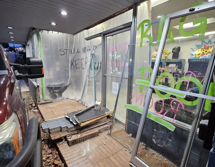 Part of the business was damaged when an SUV wrecked through structure’s front entrance on Sunday, Nov. 3, near the intersection of Irvin Street and Level Grove Road.