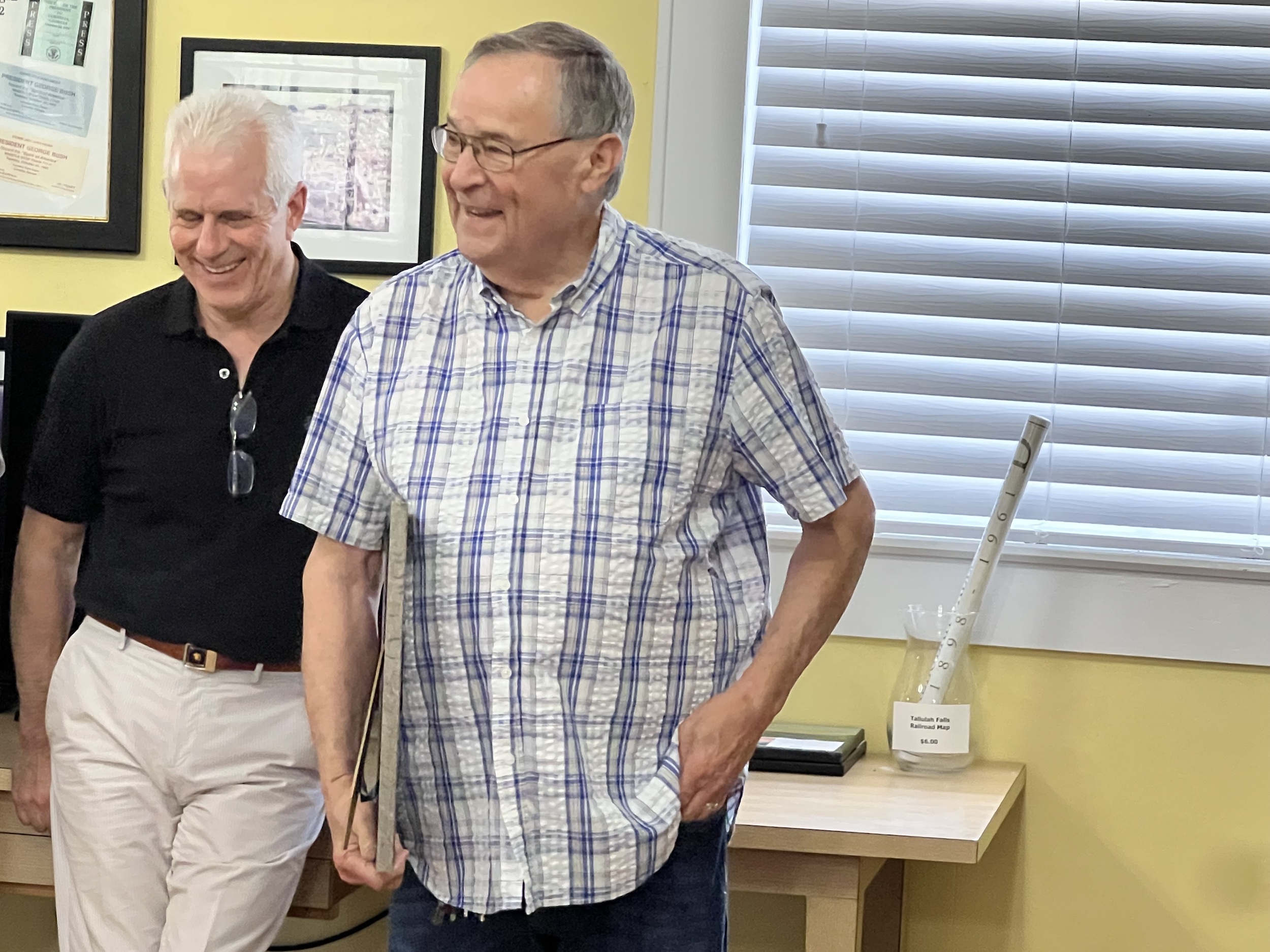 Borrow read a proclamation declaring Saturday Buck Snyder Day. He recognized Snyder as someone who has “unselfishly given his time and talent to protect and preserve the depot and the cabooses.” The Cornelia Depot Association hosted the event. Those who attended toured the museum and refurbished cabooses, and previewed a new documentary featuring Snyder, called Cornelia: A Train Town, produced by Habersham’s own Peter Madruga.