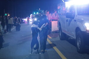 That schedule change may have caused some entries to drop out – the most noticeable absence was Habersham Central High School’s marching Band of Blue – but it didn’t kill the Christmas spirit. There was plenty of cheer in the crowd as WCON Radio pumped Christmas music through speakers into the night air and kids scrambled for candy thrown from the floats.