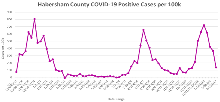 Case numbers in many counties in the District Two Public Health Region, including Habersham County, are close to reaching pre-holiday season levels. As these numbers continue to trend downward, there may be hope the region could see case numbers similar to those in the spring of 2021.