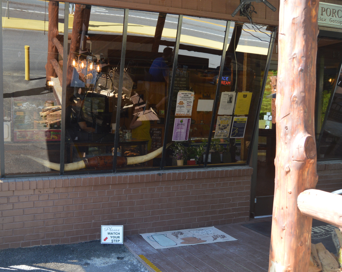 Late Monday morning, a runaway wheel struck the donut and coffee shop near Clarkesville, shattering a plate glass window.