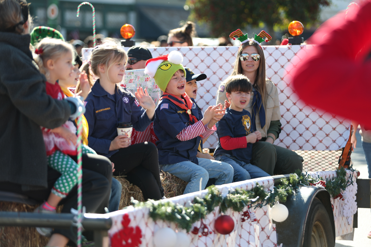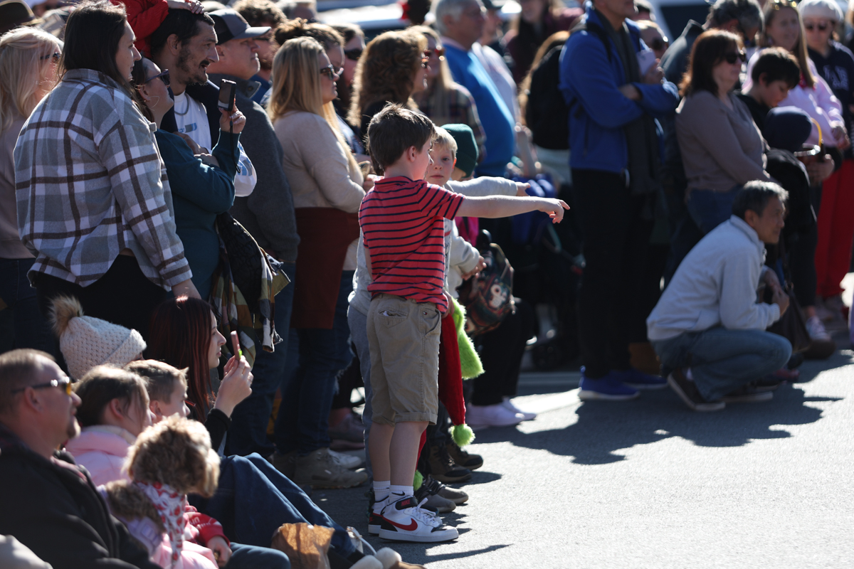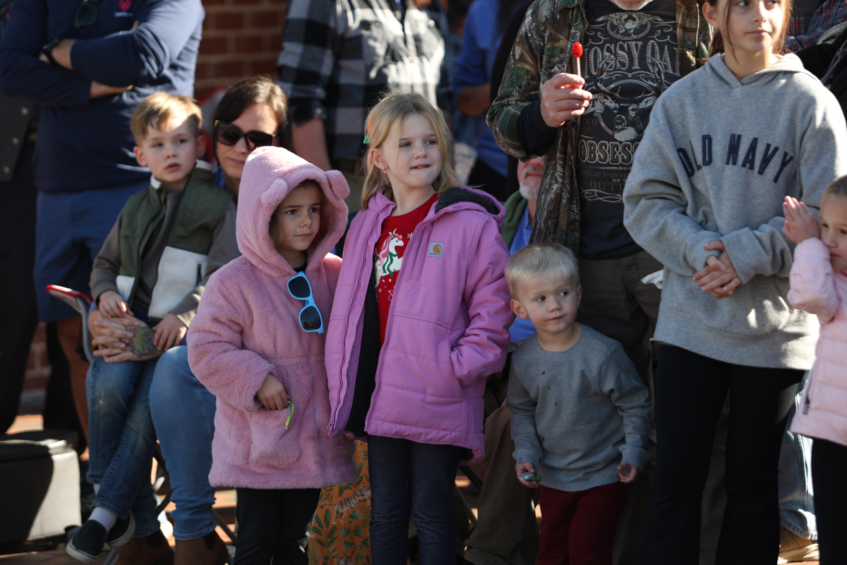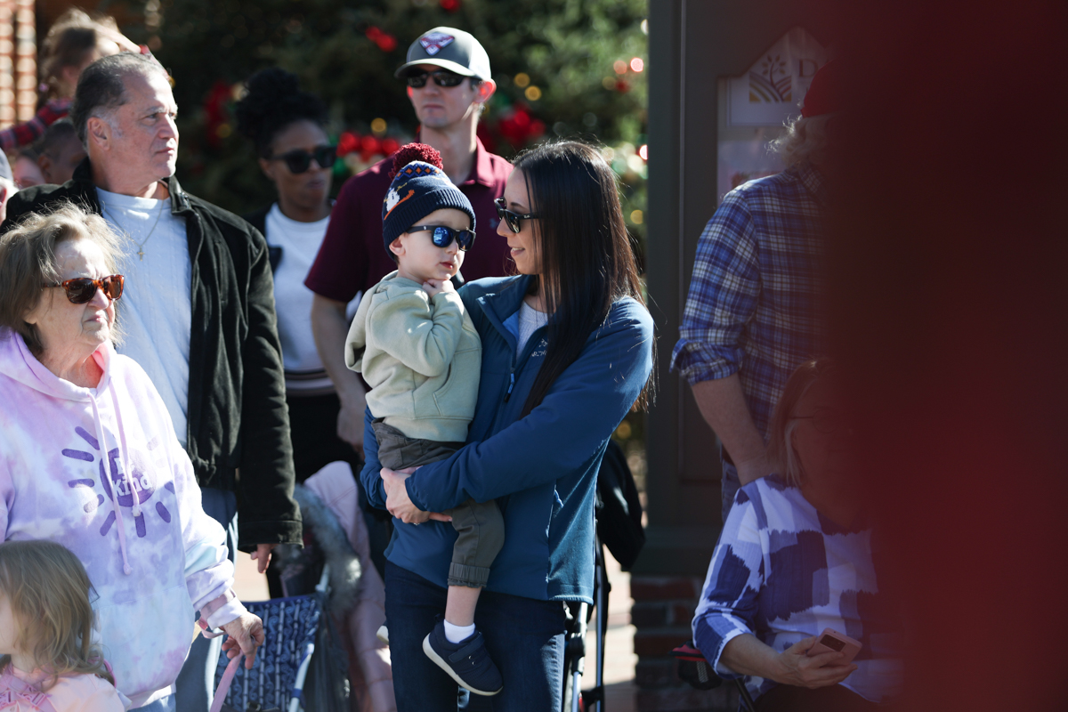 Families lined sidewalks early, many bringing chairs and blankets as they waited for the parade to begin. Children waved and collected candy while holiday music echoed through the square.