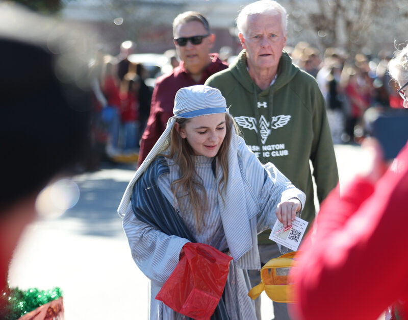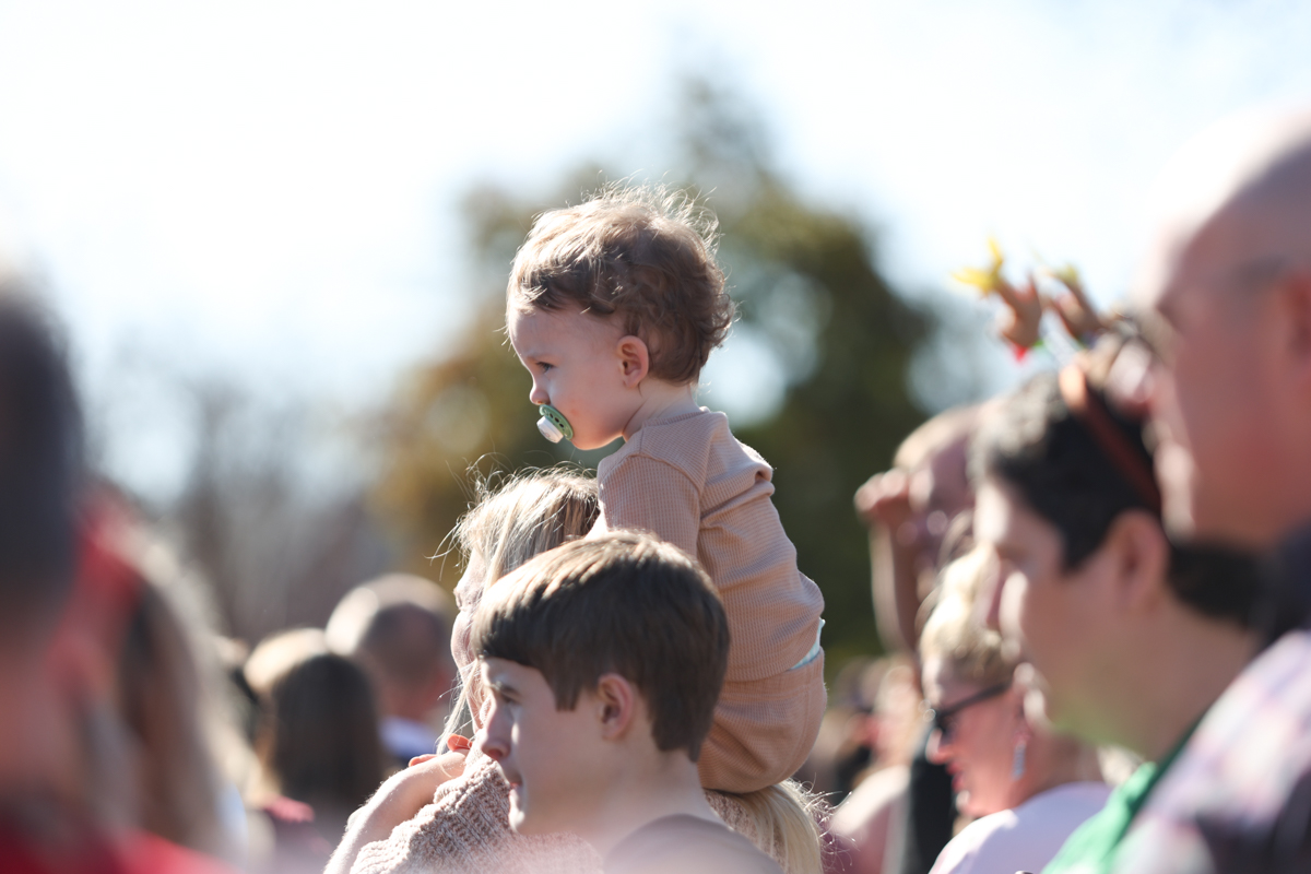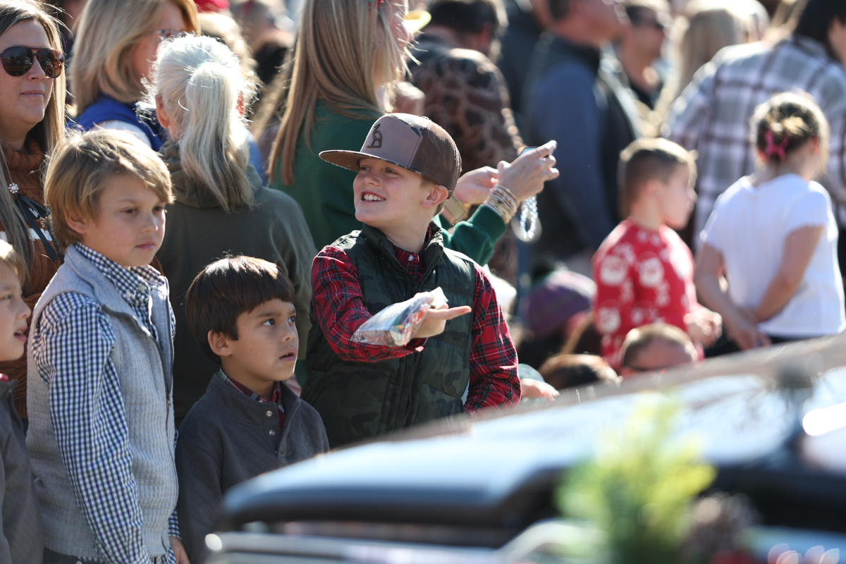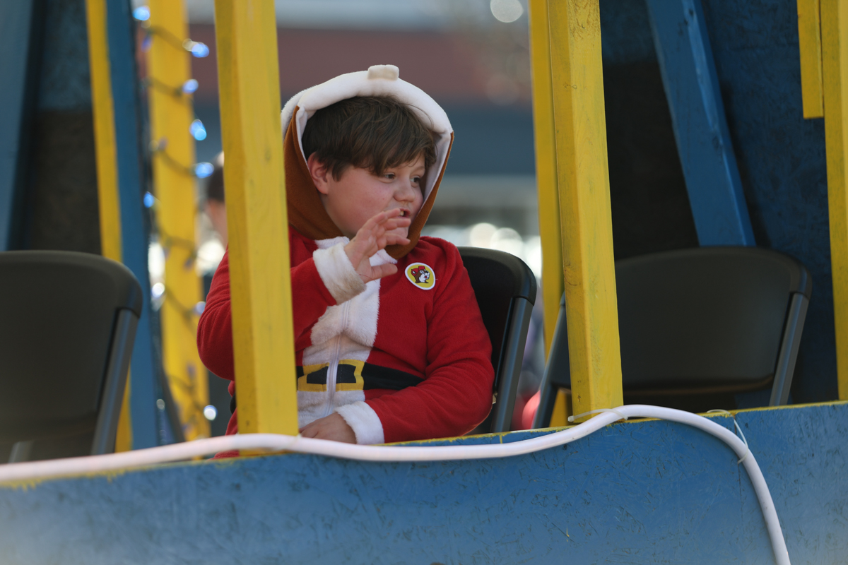 Families lined sidewalks early, many bringing chairs and blankets as they waited for the parade to begin. Children waved and collected candy while holiday music echoed through the square.
