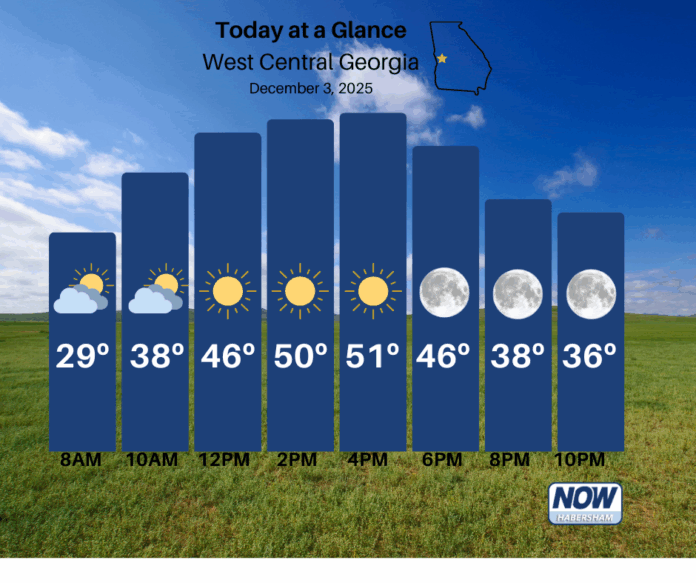 Expect plenty of sunshine today with highs climbing into the low/mid-50s.