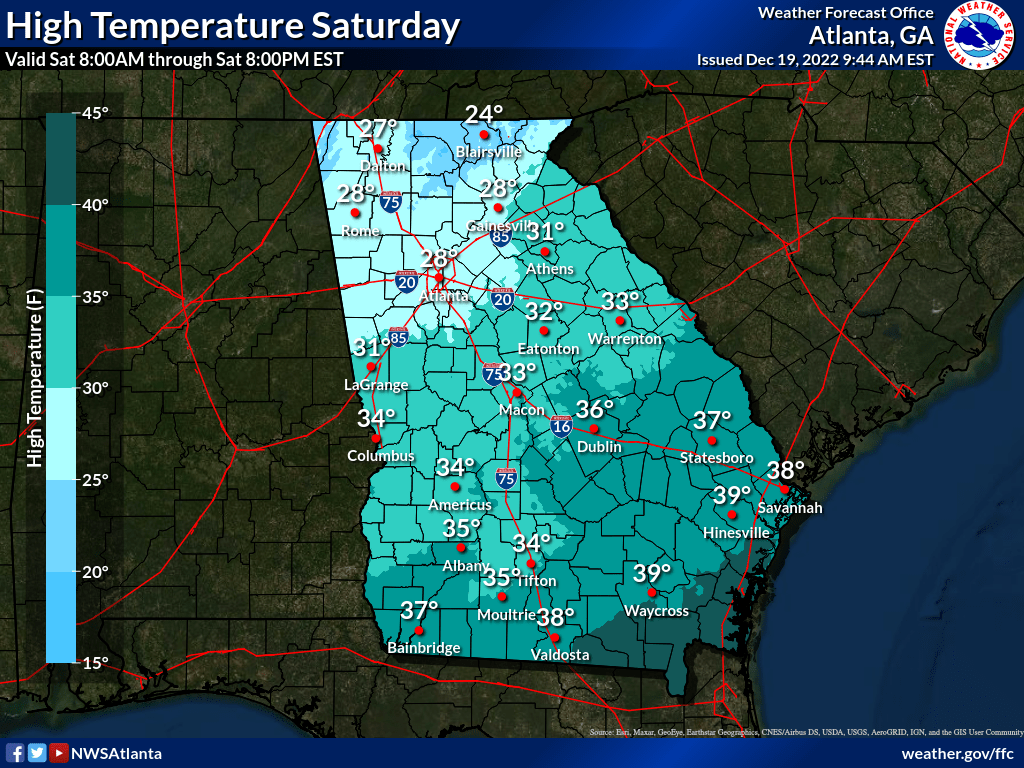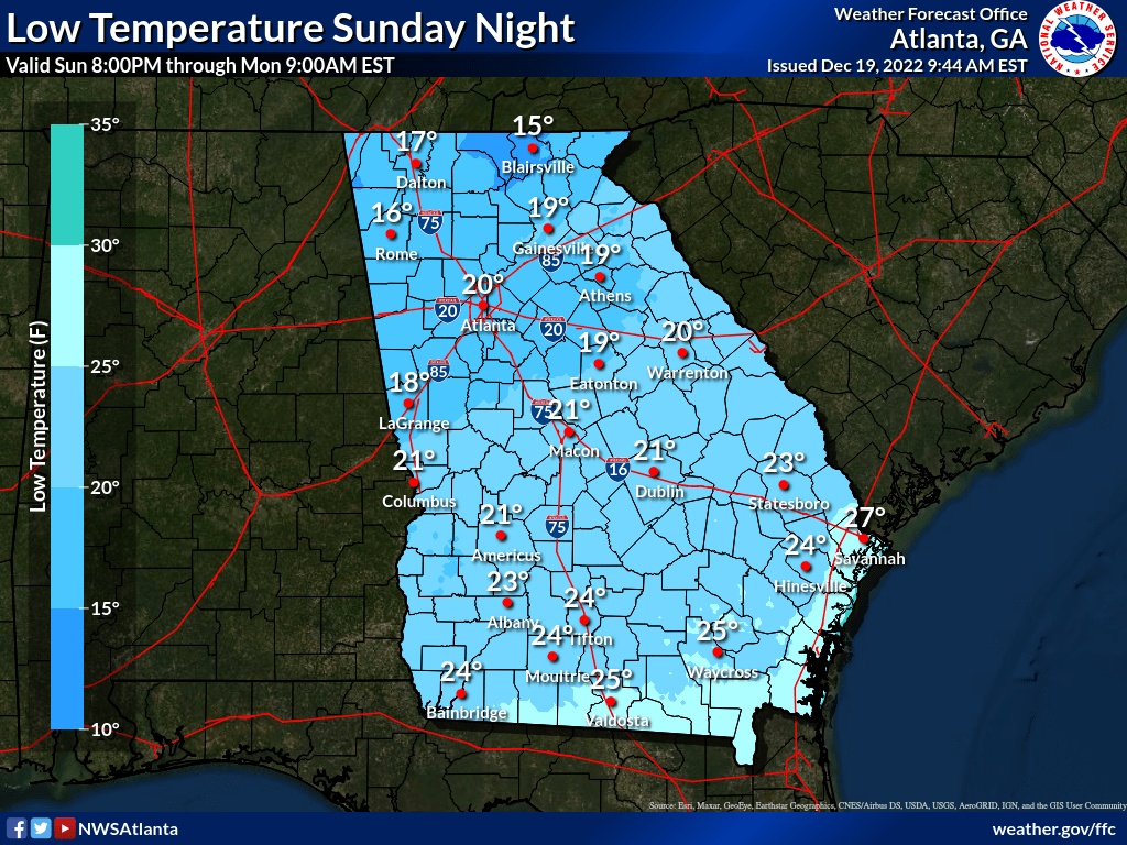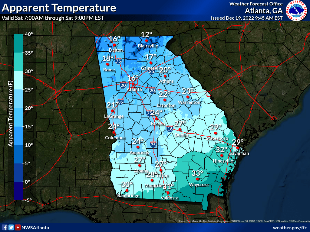 A Wind Chill Watch is in effect for North and Central Georgia from late Thursday night through Saturday morning. Wind Chills could reach as low as 15 to 20 degrees below zero which can result in hypothermia and frostbite within just a few minutes.