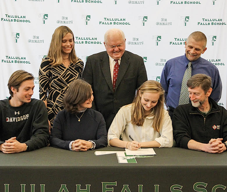 Tallulah Falls School senior Anna Davis of Clarkesville on Jan. 11 signed a National Letter of Intent (NLI) to compete in track and field for the red and black Davidson College Wildcats (NCAA Division 1–Atlantic 10 Conference) in Davidson, North Carolina.