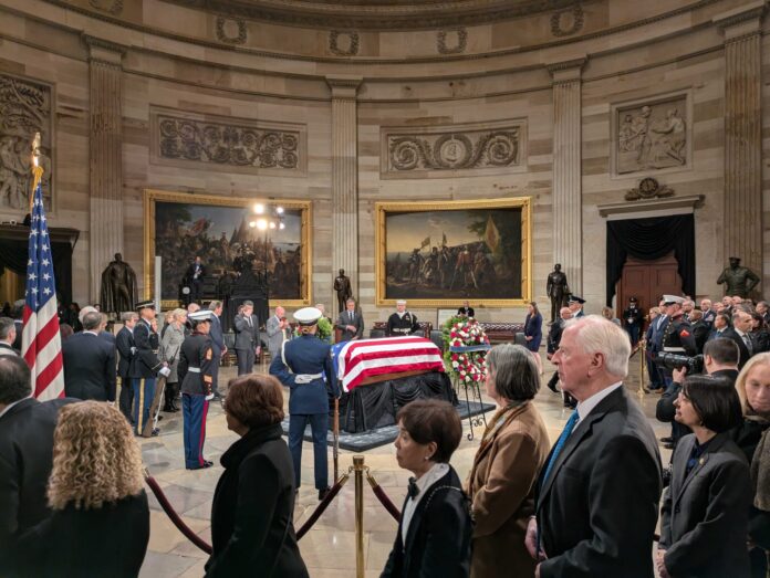 WASHINGTON (States Newsroom) — Lawmakers, military officials and other dignitaries celebrated the late President Jimmy Carter’s life and achievements before, during and after his White House term at a service in the U.S. Capitol Rotunda Tuesday where he will lie in state until Thursday.