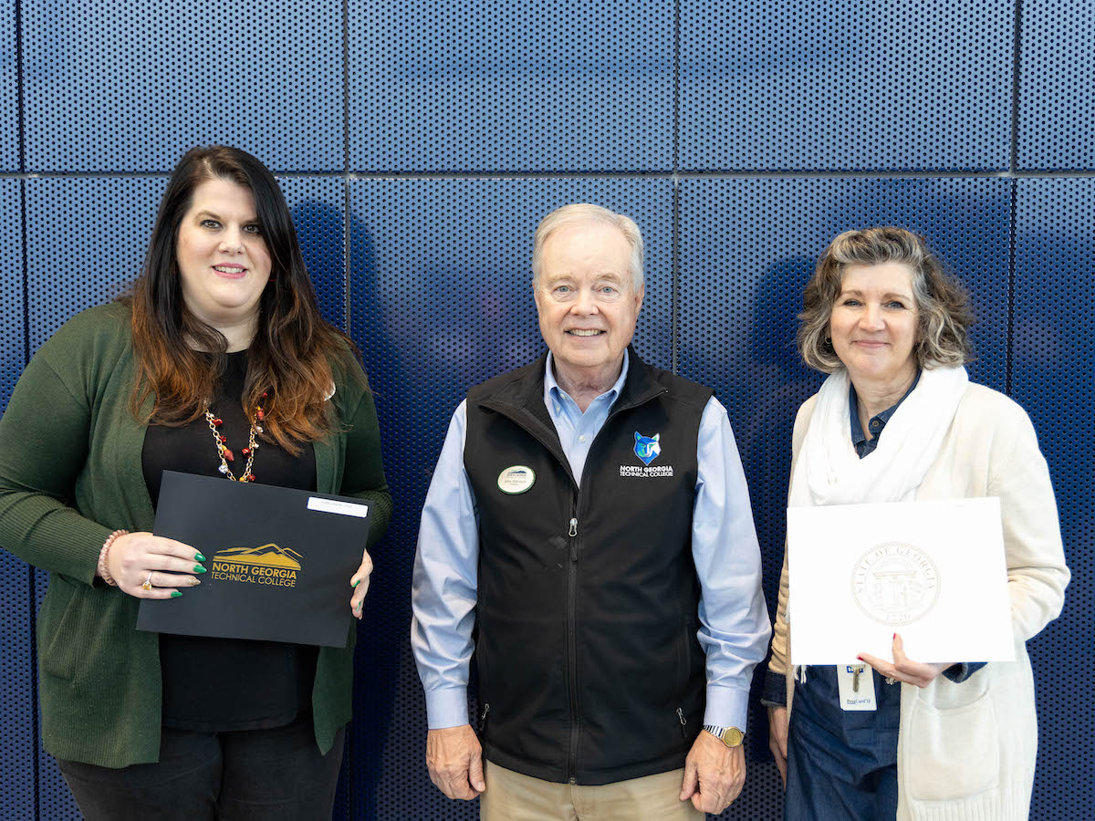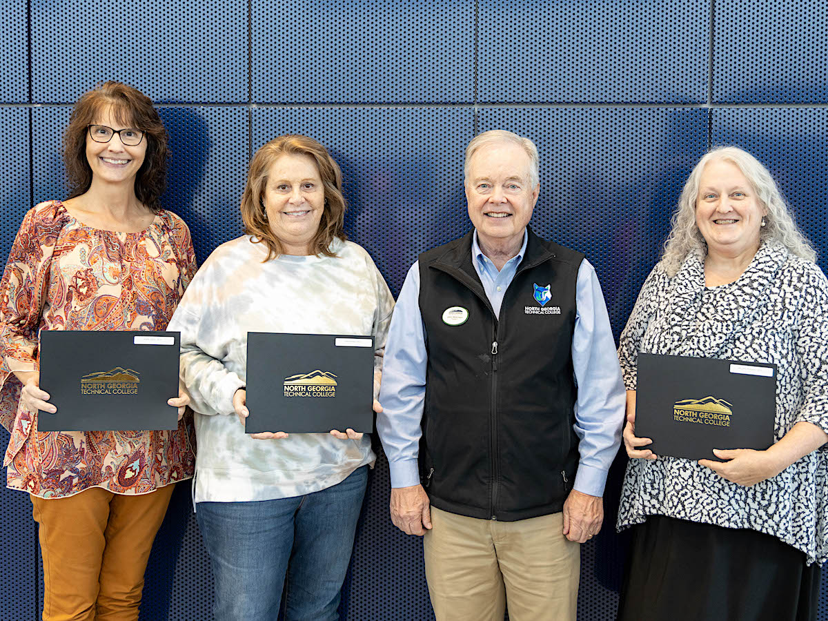 Sheila Kisner of Demorest, Ga.; Kristie Gibbs of Mineral Bluff, Ga.; and Ida Lynn Wallace of Morganton, Ga. were all recognized for 25 years of service with NGTC.
