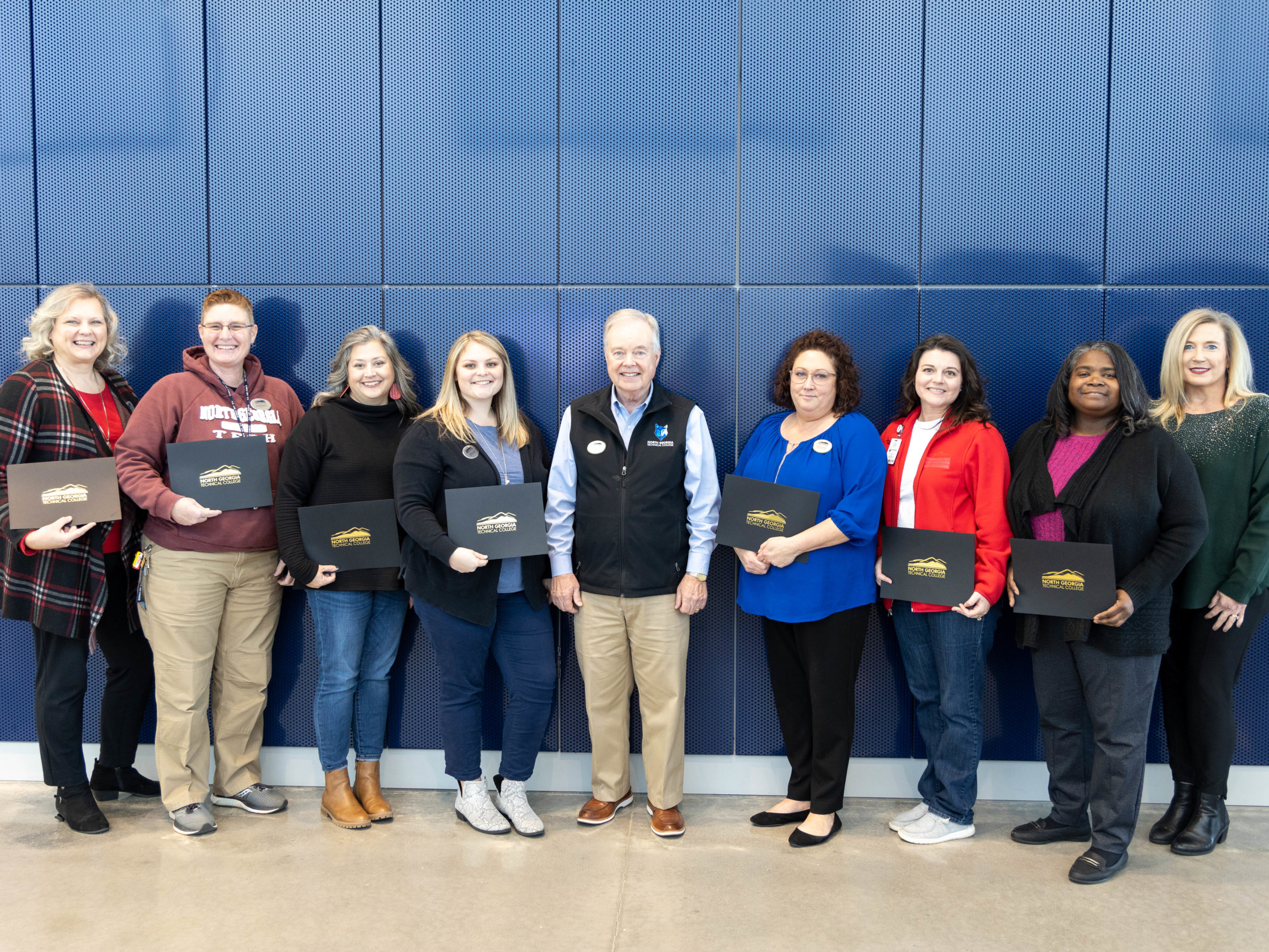 Five-year service employees included Lindsay Adams of Toccoa, Ga.; Jerri Beasley of Clarkesville, Ga.; Millie Caudell of Carnesville, Ga.; Tina Dellaposta of Murphy, N.C.; Jennifer Garrett of Cornelia, Ga.; Jessica Huff of Clarkesville, Ga.; Kevin McCurry of Toccoa, Ga.; Sharon McFarland of Blue Ridge, Ga.; Kelsey McIntire of Cornelia, Ga.; Brandy Qualls of Toccoa, Ga.; Leslie Ring of Mount Airy, Ga.; Vickie Sullens of Alto, Ga.; and Jamey Wilkes of Toccoa, Ga.