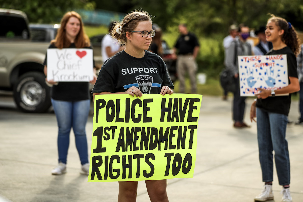 Several dozen people gathered in the parking lot outside the Demorest Municipal Building on Tuesday waiting to hear why the city’s police chief was fired.