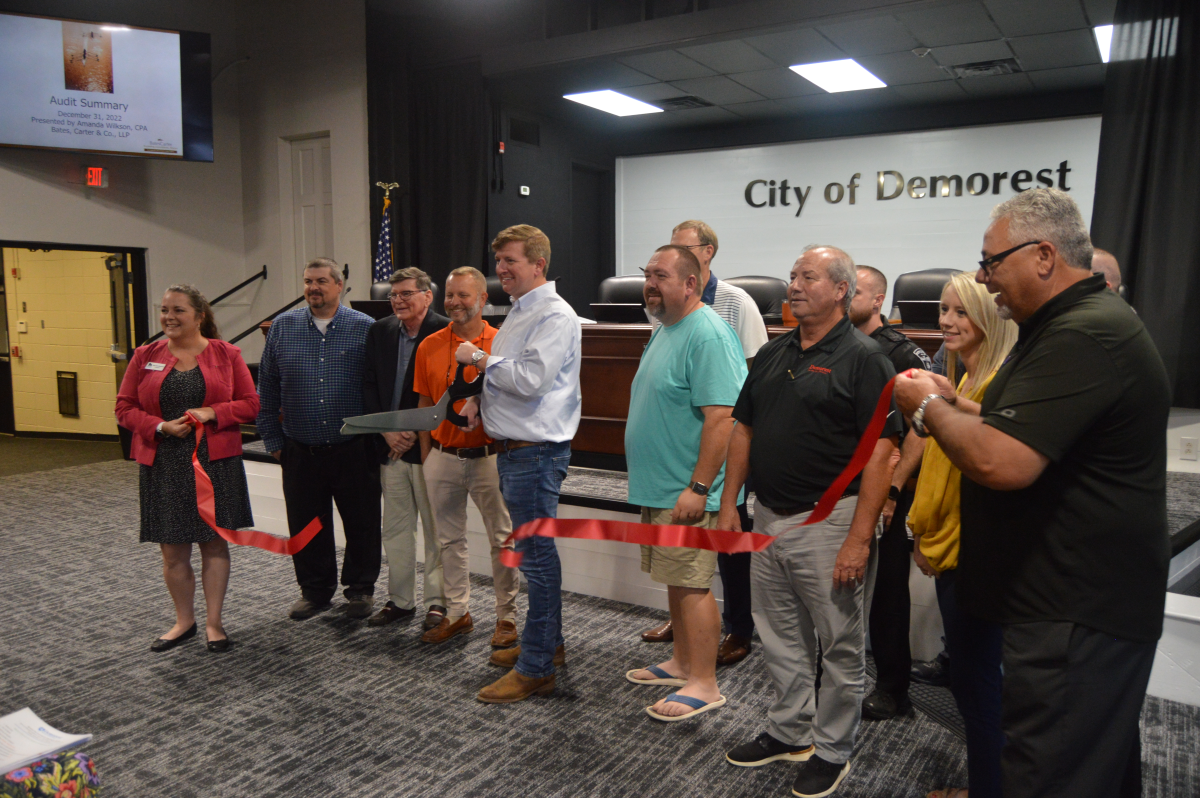 The city of Demorest and Habersham Chamber of Commerce cut the ribbon Tuesday night on Demorest’s new Municipal Conference Center and Court. The brief ceremony was held ahead of the evening’s regular council meeting on September 12.