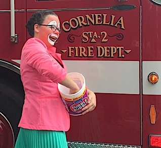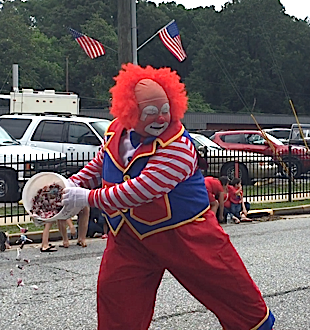 A clown and a fire truck make any parade complete. There were a number of fire trucks, police cars, and emergency vehicles in Demorest's parade on the fourth. Lots of horns and sirens, too.