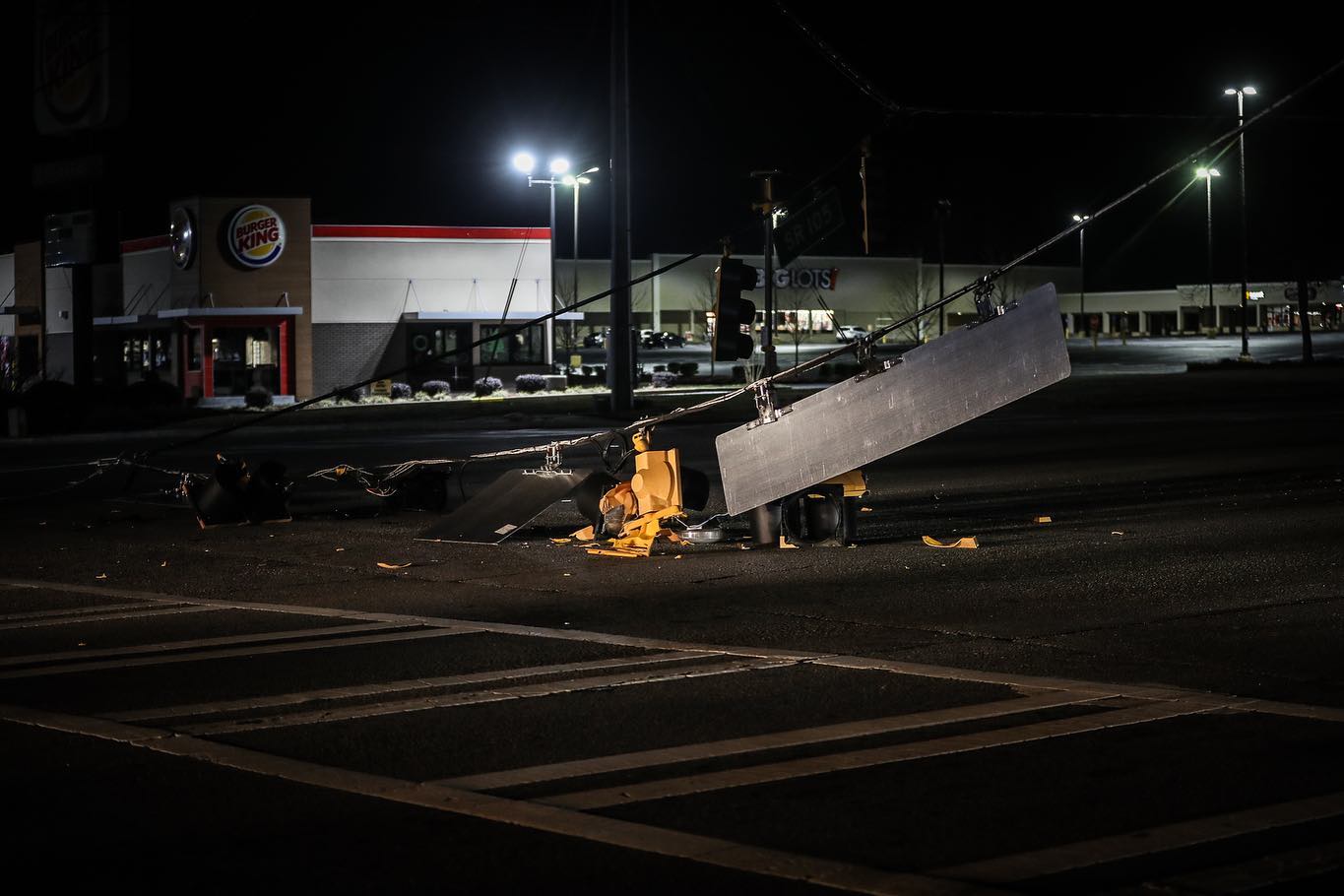 “Within 1500 feet, Deputy Holcomb performed a second PIT on the vehicle, to which the Jetta traveled off the roadway to the right and struck a power pole,” the State Patrol report states. The crash’s impact caused the traffic signals to fall at the intersection of U.S. 441 Business and J Warren Road.