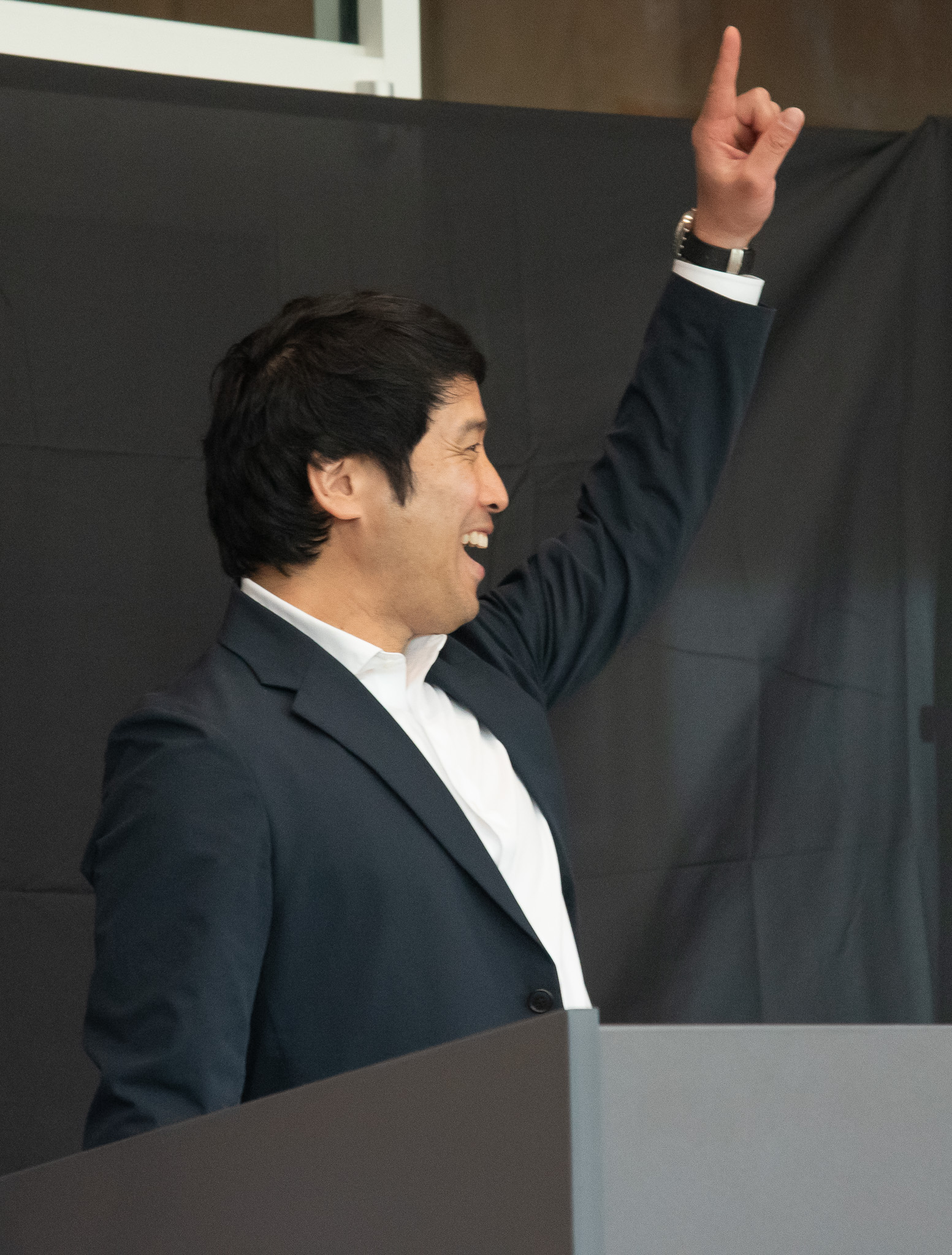Kinsun “Frank” Chan enthusiastically receives the 2024 Alumni of the Year Award at the 2024 TFS Homecoming event.