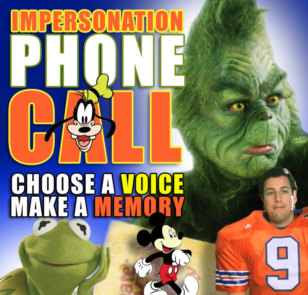 There is still time to add something special to your holiday celebration. You can book a phone call for Mr. Green, Mickey Mouse, Goofy, or Kermit. It’s never too late to add a little green to your holiday celebrations.