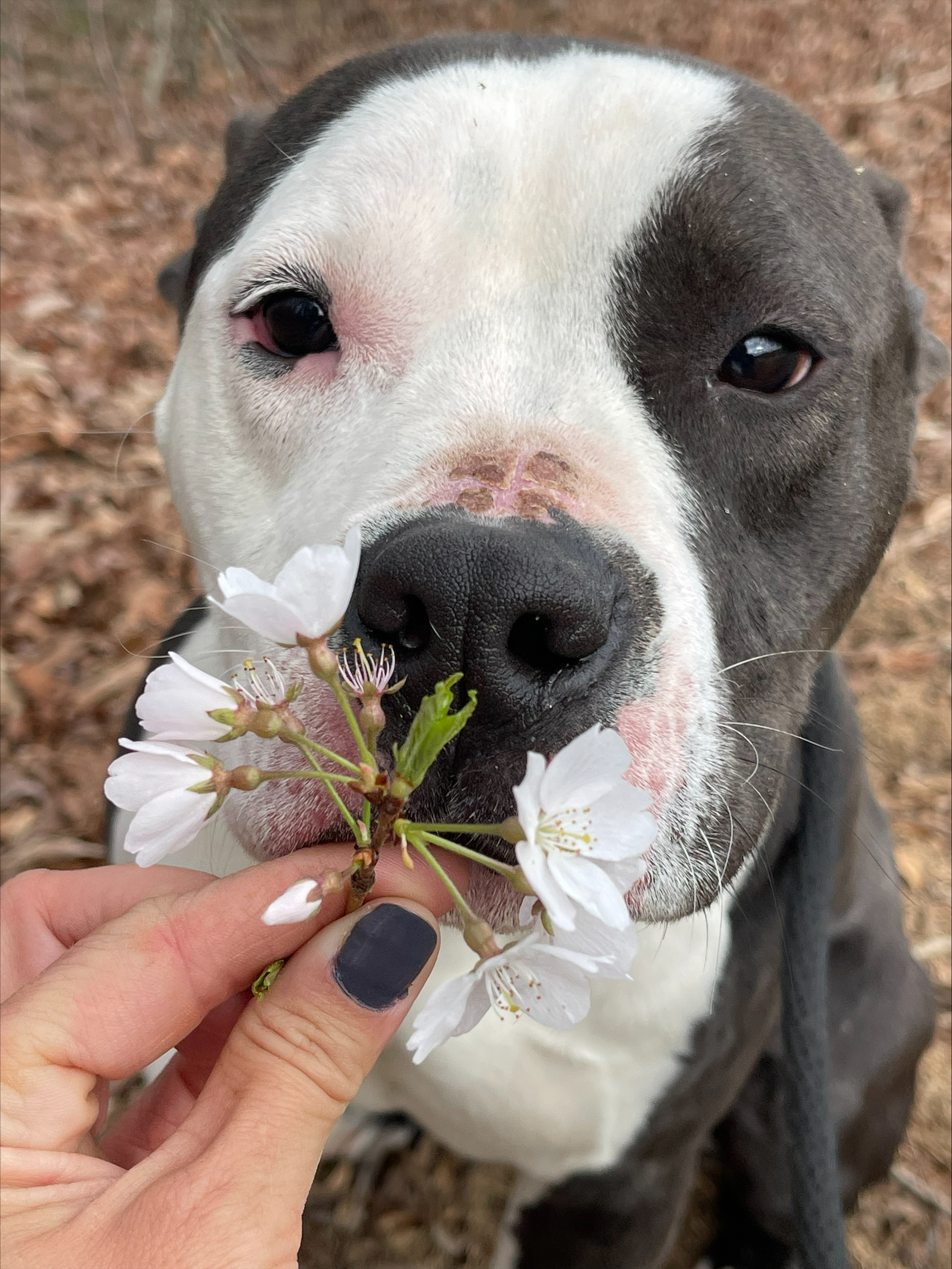 Pick me for a pet and I’ll teach you how to stop and smell the roses (and cherry blossoms). Our lives will be richer side by side. (Habersham County Animal Care and Control)