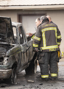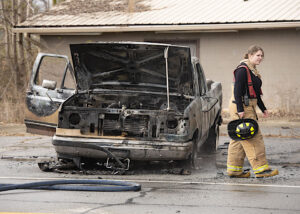 The driver of this pickup managed to park and escape before flames consumed the truck. (photo/Richard Hayes)