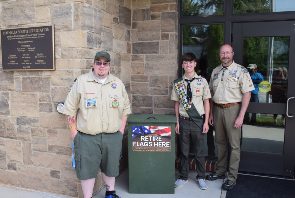 A Clarkesville Boy Scout Troop 5 Eagle Scout has dedicated three new flag boxes around the community as part of his community service project. Eagle Scout Brody Allen of Hollywood placed a flag box at Cornelia Fire Station 1 in downtown Cornelia. He placed another box in City Hall in Demorest. His final box was located at the Boy Scout hut in Clarkesville.