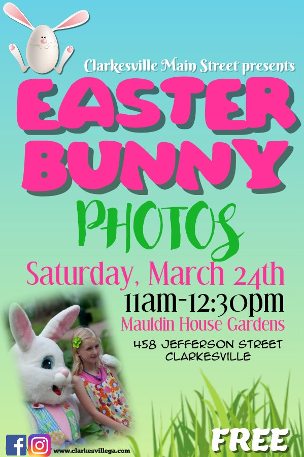 “We’re looking forward to welcoming the Easter Bunny to our downtown,” says Clarkesville Main Street Manager Mary Beth Horton. “It will be a lot of fun for kids and their families, plus it’s an opportunity to check out the many great spring and Easter season specials among our downtown retailers.”