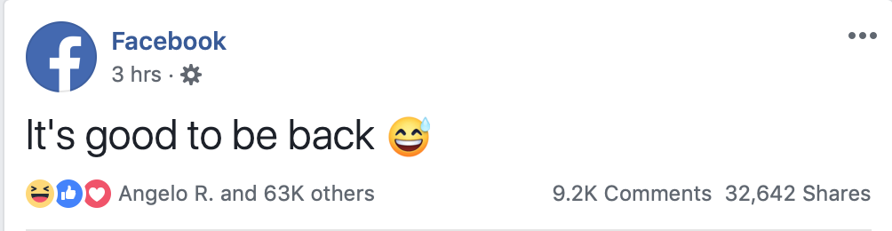 Around 1:30 a.m. EST the company posted on its Facebook page “It’s good to be back.”