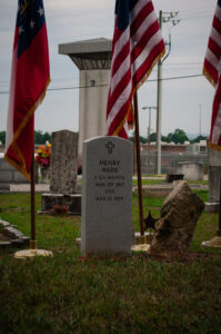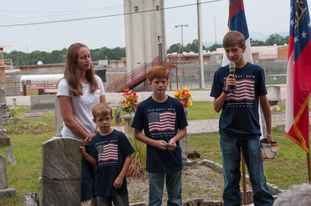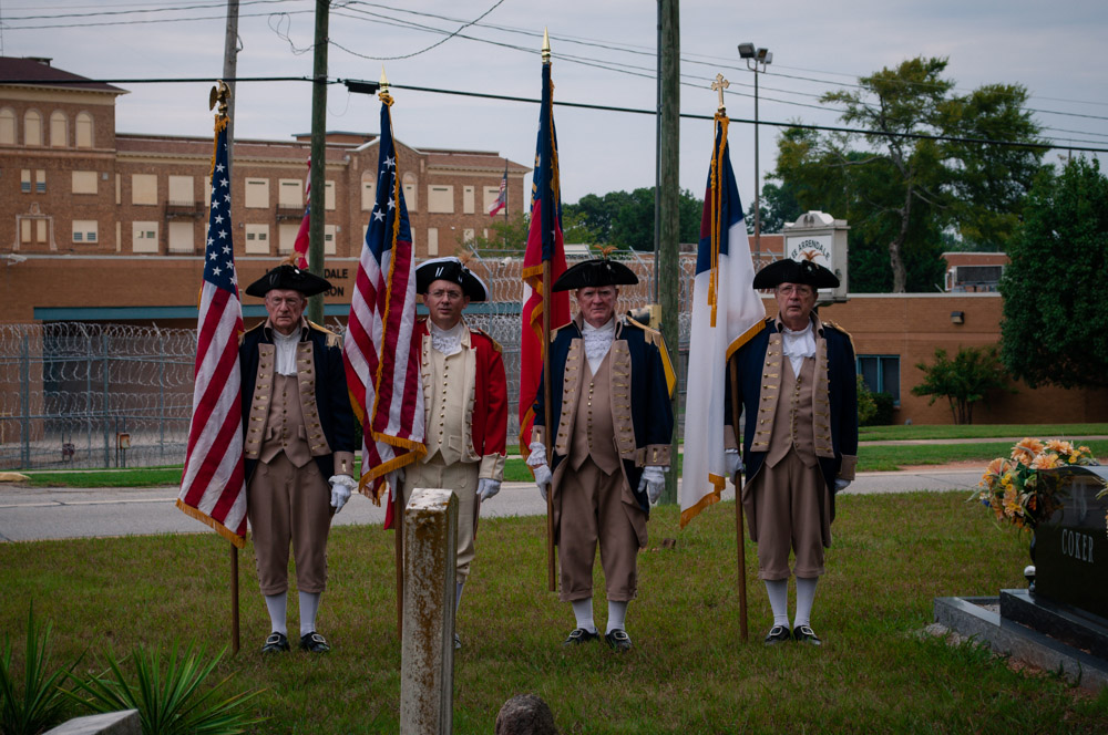 A uniformed color guard from the Joseph Habersham Chapter of the Sons of the American Revolution joined history-teller and Wade descendant Beth Collins Saturday in commemorating Henry Wade’s service. A War of 1812 marker provided by the Veteran’s Administration was placed on his grave.