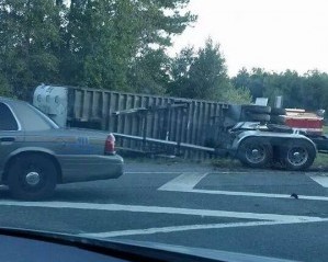 It happened around 5:30 p.m. at the intersection of 365 and Jaemor Farms Road. Allen says Johnson was a passenger in a 1999 Lexus ES300 driven by her husband, 77-year old William Johnson of Gainesville. He says Johnson was traveling west on Jaemor Farms Road and crossed over 365 to turn south when he failed to yield and ran into the path of a northbound semi-truck. Troopers say the driver of the truck, 26-year old Charles Littrell of Harrogate, Tennessee, attempted to swerve and avoid a collission but struck the Lexus in the front left-hand side. The truck overturned in the median. The Lexus landed in a ditch off the east shoulder of the road.