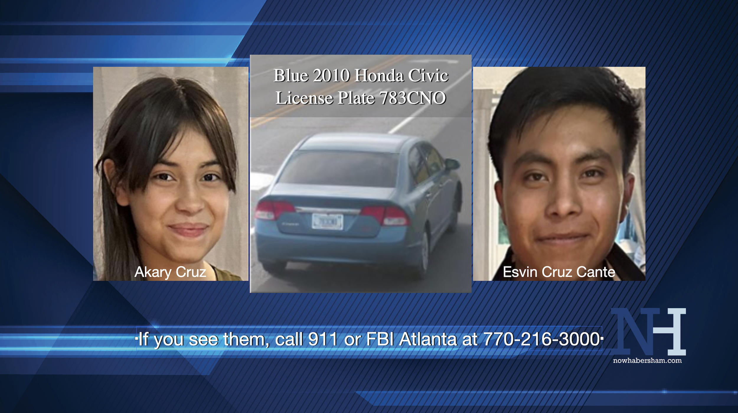 Cruz and Cante are believed to be traveling in a blue 2010 Honda Civic with license plate number 783CNO.
