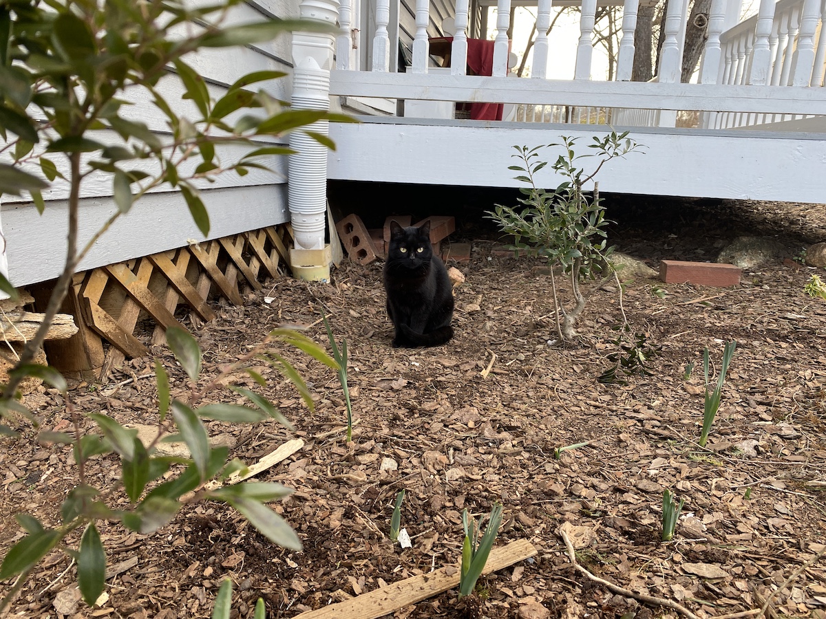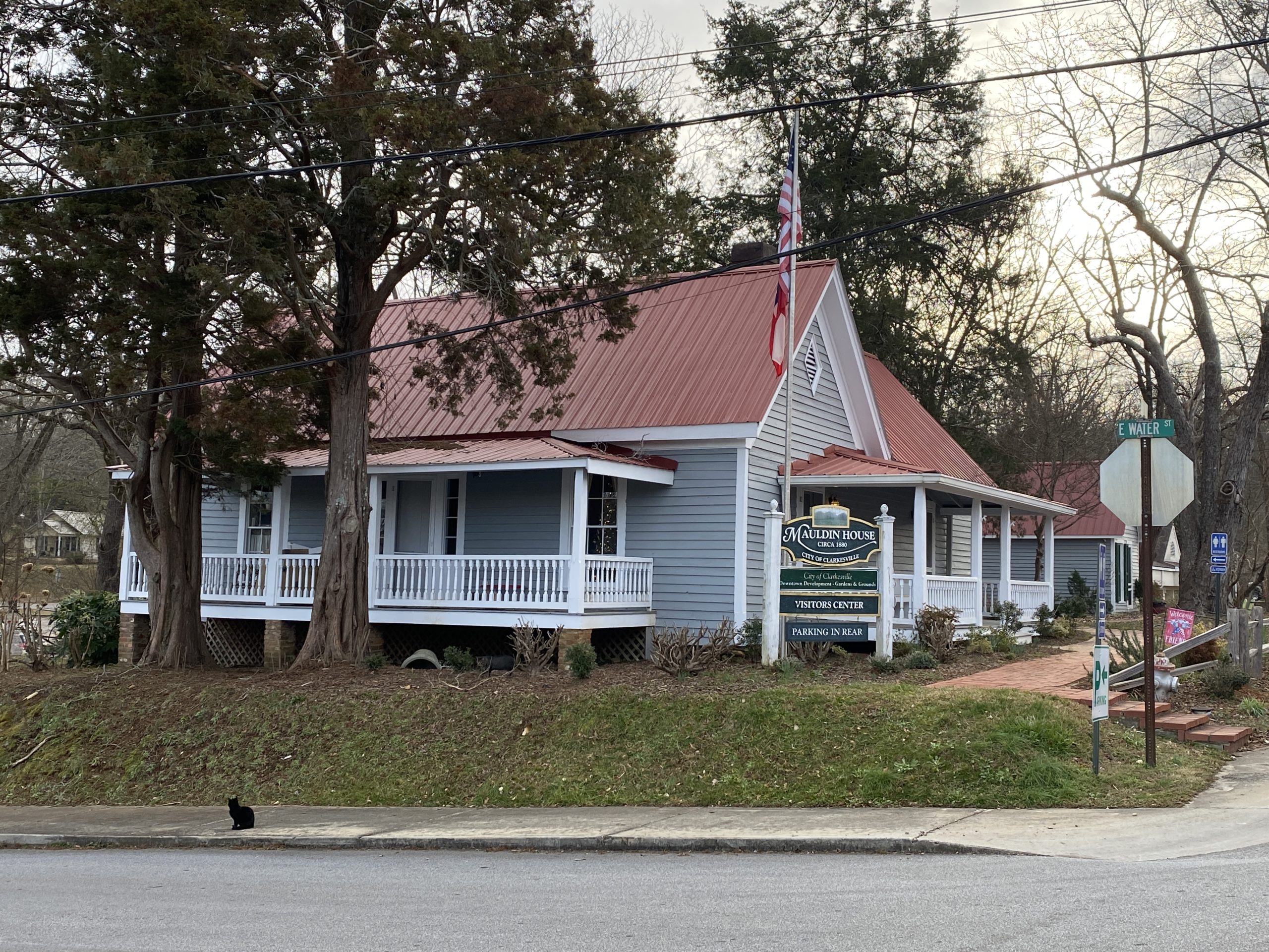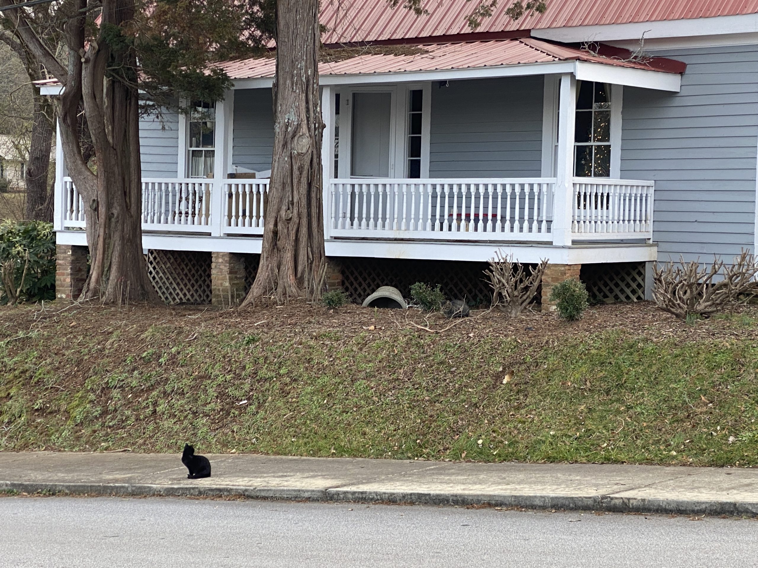 The porch at the Mauldin House provides shelter for a colony of feral cats, which, in turn, provides pest control, and undeniable cuteness, to the historic home and gardens.