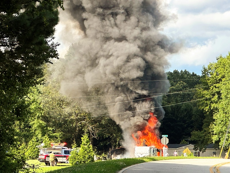 “We responded to an approximately a 1,500-square-foot, triple-axle camper,” said Habersham County Emergency Services Battalion Chief Michael Alexander. “When we arrived, it was fully involved. We quickly got the fire under control and secured the propane tanks. All the family members were out safe.”