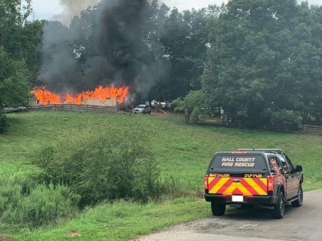 At approximately 11:30 a.m., Hall County Fire Rescue was dispatched to a residential structure fire in the 8600 block of Forrester Road.