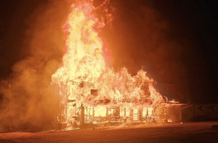 Fire engulfs the Tiny Town Restaurant in Homer in the early morning hours of September 15, 2025. (Banks County Fire Department)