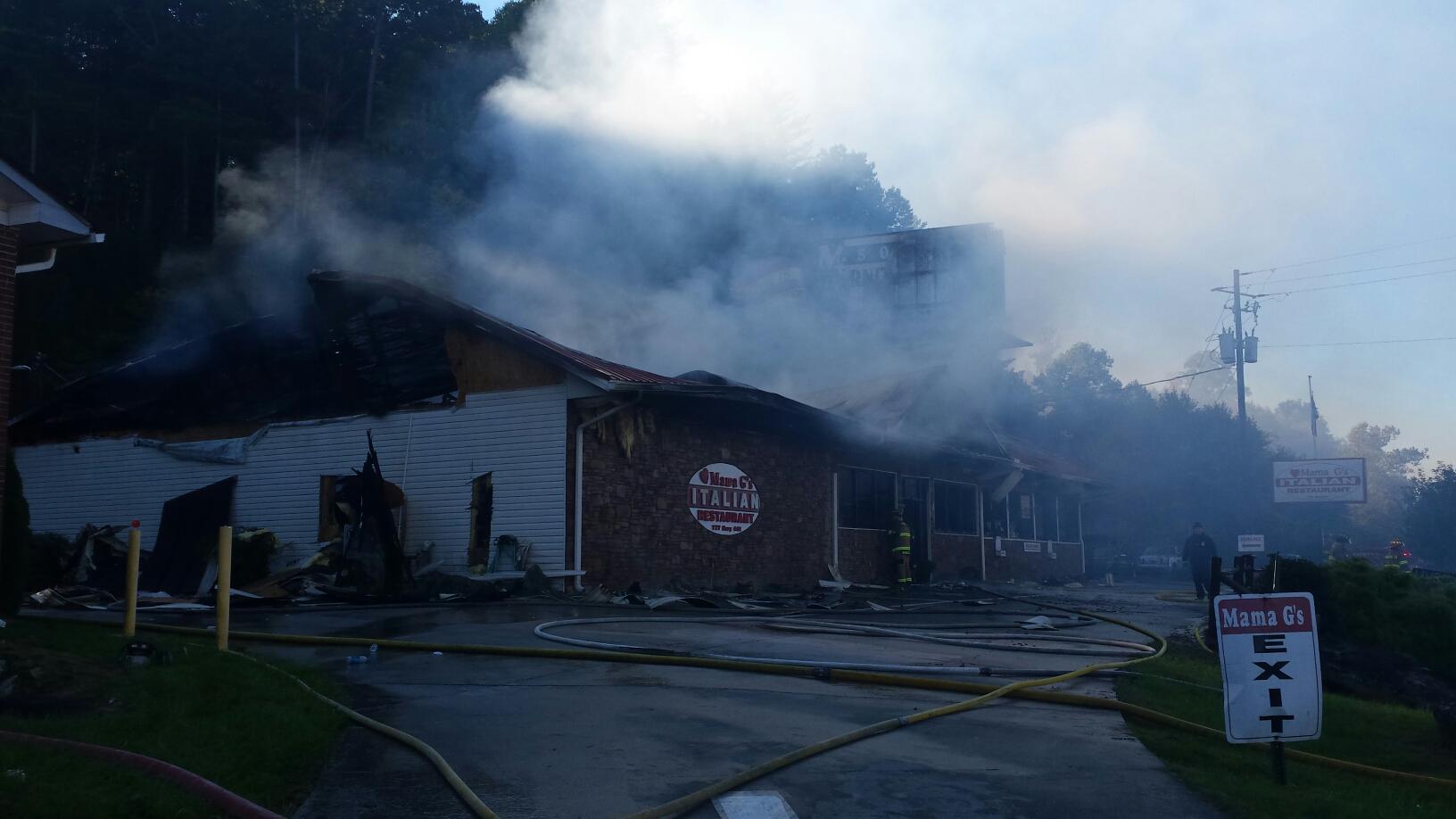 Most of Mama G’s Italian Restaurant on Highway 441 burned to the ground Monday. Rabun County Fire Chief Daniel Johnson says the fire was called in at 7:52 a.m. He says when firefighters arrived the “whole roof” was on fire. Johnson describes “about twenty-foot flames” shooting into the air.