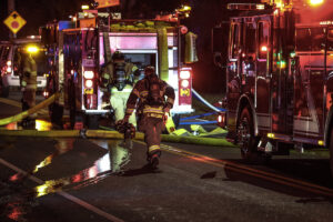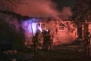 “Fire crews arrived and found the apartment building under heavy fire conditions. Firefighters made a quick search of the lower apartment units and found no victims,” Hazle says.