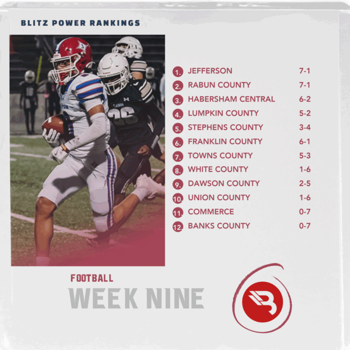 Jefferson takes over the top spot in this week’s Northeast Georgia BLITZ Power Rankings after another dominant win. The Dragons edged past Rabun County for No. 1. Habersham Central stays steady at No. 3 after a strong showing against Alcovy, while Lumpkin and Stephens round out the top five.
