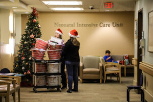 On Christmas Eve, two local moms delivered Christmas baskets to them in the neonatal intensive care unit (NICU) at Northeast Georgia Medical Center in Gainesville.