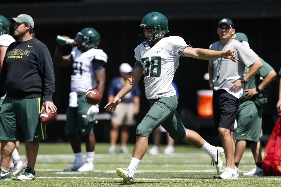 Ian Wheeler had a big 2016. Not only did he complete his redshirt-junior season at the University of Oregon, but the punter also got married. An Oregon walk-on punter who earned a scholarship, Wheeler averaged 39.1 yards per punt as a freshman during Oregon’s run to the College Football Playoff in 2014, but increased his average to 39.8 as a sophomore in 2015. In 2016, his average dropped to 37.8, but he set new career-highs in punts (59) and total punt yards (2,233).